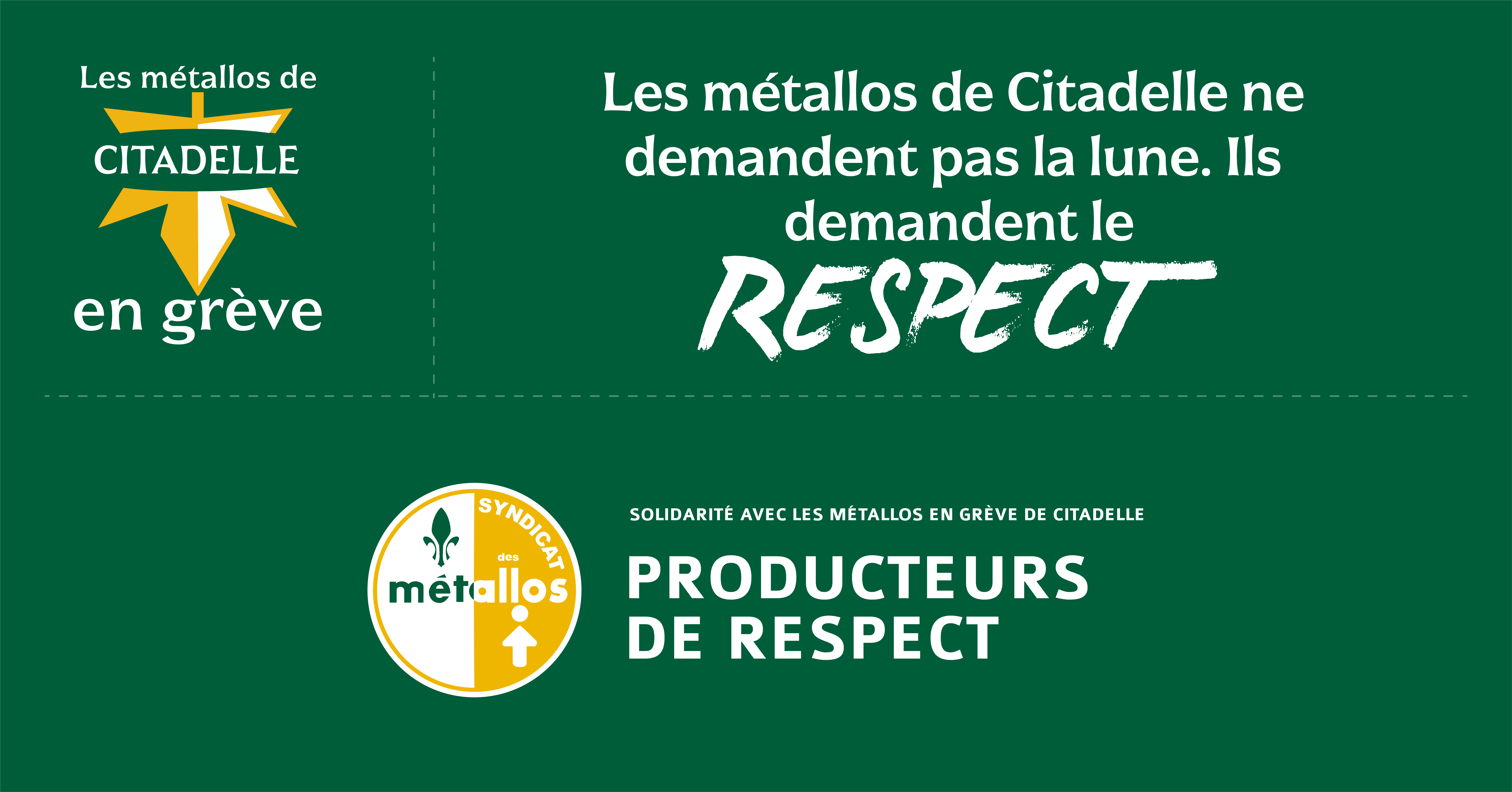 Affilié à la FTQ, le Syndicat des Métallos est le plus important syndicat du secteur privé au Québec. Nous faisons partie d'une grande organisation internationale, capable de négocier d'égal à égal avec les multinationales. Nous sommes une grande famille. Si on s'attaque à un seul d'entre nous, on s'attaque à tous les Métallos.