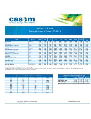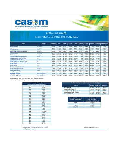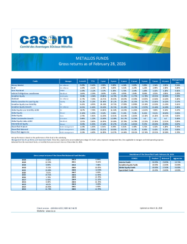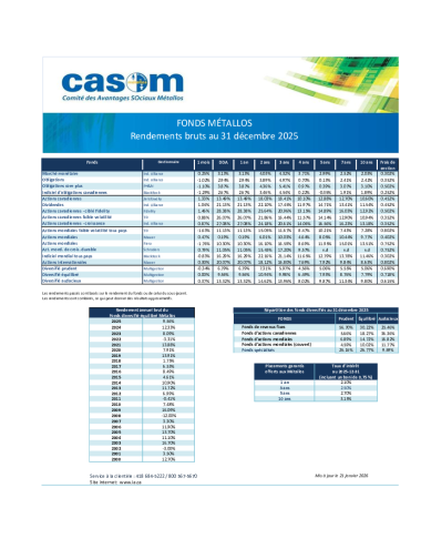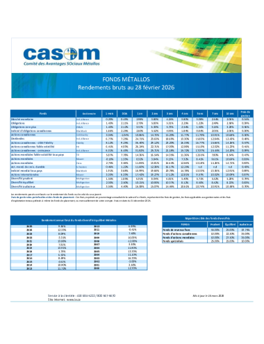 Tableau des rendements Fonds Métallos